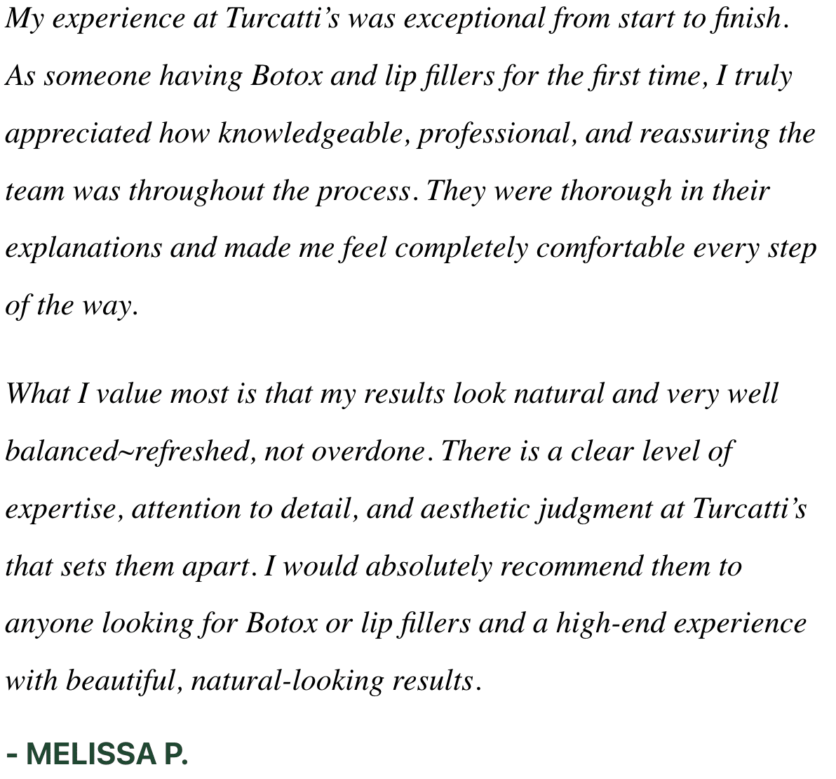 When you choose Turcatti’s, you’re not just choosing a med spa—you’re choosing a destination where every detail is designed around your comfort, confidence, and transformation.